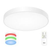 С помощью пульта доступно: плавная регулировка яркости от 10 до 100%; управление цветовой температурой от 3000К до 5500К позволяет настроить любые оттенки теплого, нейтрального или холодного света. Цветная RGB подсветка имеет фиксированные и динамические режимы работы. Есть функция отсроченного выключения, 4 настраиваемых режима памяти, которыми также можно управлять настенным выключателем. Радиопульт ДУ в комплекте, работает на частоте 2,4ГГц. Питание пульта - 2 батарейки формата ААА, напряжением 1,5V (в комплект не входят).