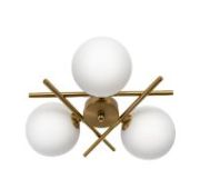 На золотистом основании высотой 12мм из высокопрочного полимера располагается белый матовый плафон-сфера диаметром 30см, изготовленный из специализированного оптического полимера. Удобный выключатель располагается на проводе.