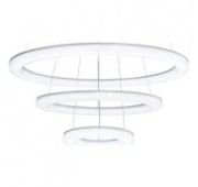 Потолочная люстра в форме кольца (бублик). Корпус металлический, рассеиватель оптический полимер, цвет белый матовый. Крепление люстры подходит для всех типов потолков, в том числе натяжных. Тип крепления – планка.