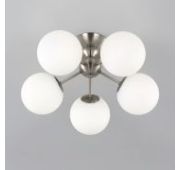 В изделии 7 ламп с цоколем G9 максимальной мощностью для галогенных ламп 40Вт, светодиодные лампы можно устанавливать более яркие. Диаметр светильника 41см, высота 20см. Модель подходит для всех типов потолков, в том числе натяжных, тип крепления – планка.