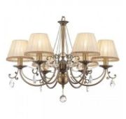 Серия из металла цвета античной бронзы. Арматура светильников Driana дополнены завитками на рожках и узогнутым декором в центральной части. Абажуры из полупрозрачной органзы выполнены в виде колокольчиков и обрамлены ободками из металла.
