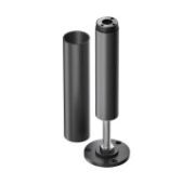 Металлическое основание в двух оттенках: черный и хром. Выдвижной кронштейн. Материал абажура – текстиль на ПВХ, оттенки – черный, красный, белый. Источник света - лампа с цоколем Е27.