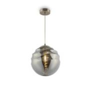 Металлическая арматура. Оттенки – латунь, хром. Оригинальный разноразмерный декор с эффектом замороженной фактуры. Материал декора – стекло. В качестве источников света используются лампы с цоколем Е14.