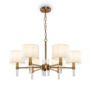 Материал арматуры — рифленый металл, цвет — латунь. Плафоны-сферы из белого матового стекла для мягкого заливающего света. Воздушный образ плафонов, строгие тонкие линии арматуры придадут интерьеру изящество и легкость. Высота подвесов регулируется. Источник света — лампы с цоколем G9.