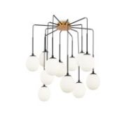 Материал арматуры - металл. Цвет - латунь, черный. Изящные линии арматуры, прозрачные плафоны из стекла в виде шара с миниатюрными лампами создают эффект воздушности светильников. Регулируемая высота подвесных светильников. Цоколь G4.