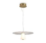 Абажуры и арматура светильников выполнены в разных цветах, с несколькими видами арматуры. Основание люстры украшено стеклянным декоративным элементом, а завитки рожков украшают подвески.