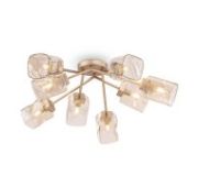 Материал арматуры — металл, цвет — бежевый. Белые абажуры из органзы изготовлены по технологии намотки. Декоративные подвески из прозрачных кристаллов. Регулируемая высота подвесных светильников. Источник света - лампа с цоколем Е14.