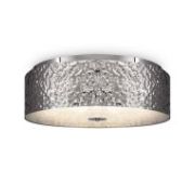 Металлическая арматура, основание – полирезин с рельефной фактурой. Аба жур – хлопок, нанесенный на ПВХ. Два цветовых решения: белый и черный. Источник света - лампа с цоколем Е27.