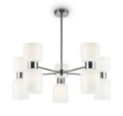 Металлическая арматура, цвет – французское золото. Декоративные элементы выполнены из прозрачного стекла в форме пестрых лепестков ледяной фактуры. Источник света – лампы с цоколем Е14, которые скрыты за декоративными подвесками, размещенными на металлической окружности. Высота подвесов регулируется.