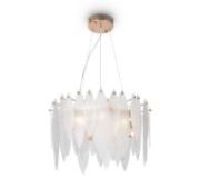 Арматура из металла в цвете хром. Двойные стеклянные плафоны в 3-х оттенках: дымчатый, коньячный, прозрачный. Компактные светильники-каскады в 2-х комбинациях — с одним плафоном и тремя. Высота тросов регулируется. Источник света — лампа с цоколем Е27