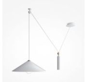 Арматура — тонкая металлическая, цвет — чёрный + латунь. Оригинальная конструкция. Три плафона-цилиндра с затемнённым стеклом закреплены на металлической оси cо встроенным LEDисточником света. Тренд «invisible light». Цветовая температура — 3000 К. Регулируемая высота.