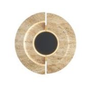 Металлическая арматура гальванизирована в цвет золота. Декор – пластины из натурального камня с текстурным рисунком. Сочетание прямоугольных линий и округлых элементов в дизайне. Цоколь Е14.