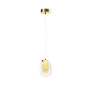 Черная потолочная чаша дополнена финишным антибликовым покрытием sandy, декоративный элемент плафона выполнен из металла цвета сатинированной латуни. Сочетание двух фактурных стекол в плафоне: нижняя полусфера из матового белого стекла для создания мягкого рассеянного света, верхняя часть плафона - из тонированного янтарного стекла. Внутри установлен LED-модуль, создающий равномерное освещение, направленное вверх и вниз. Цветовая температура – 3000К, угол рассеивания — 120°.