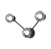 Металлическая арматура в четырех цветах: матовый черный, хром, золото, латунь. Плафоны — выдувное стекло. Цвета — дымчатый, янтарный, коньячный. Дизайн с имитацией молекулярной структуры. Высота подвесных светильников регулируется тросом. Лампа с цоколем G9.
