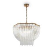 Арматура из металла, цвет – хром. Акцентный декор в виде рельефных сфер из литого стекла. Источник света – светодиодная лента – скрыта под акриловым рассеивателем. Регулируемая высота подвесных светильников.