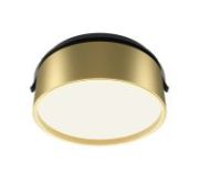 Материал корпуса – металл; цвет – белый, чёрный и золотой. Форма корпуса – стаканчик. Акриловый рассеиватель. Сияющий эффект при свечении. Отсутствие стопорного кольца. Утопленный источник света – лампа GU10.