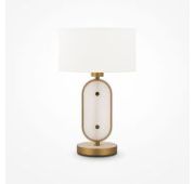 Арматура — металл, цвет — латунь. Плафон — выдувное стекло с компактным матовым рассеивателем внутри. Игра света по внешнему стеклянному элементу. Эстетика конструктивизма в дизайне. LED-источник света. Цветовая температура 3000К.